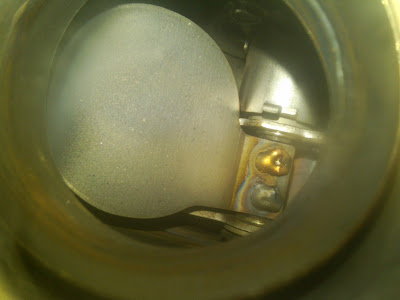 Some more shots of fitting the carb with a v-band. I machined a bit of the inside of the clamp out then began the 45 minute welding process. In order to weld the carb body without it warping I ran about a 1/2" bead of weld, then cooled the unit with compressed air, then move to the other side and to the same.